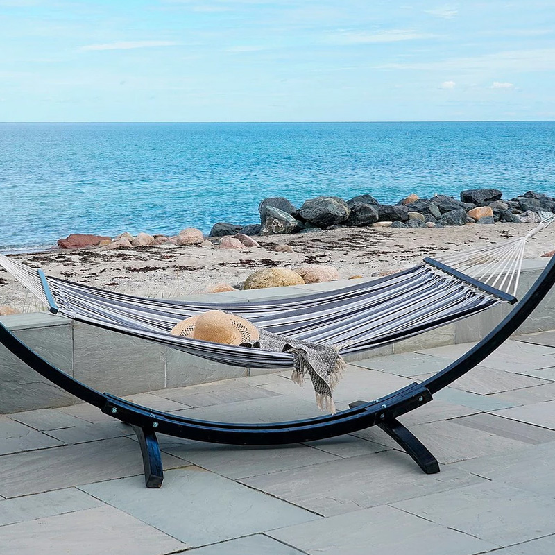 House Nordic Tripoli riippumatto puusta valmistetulla jalustalla tuo rentoa tunnelmaa kotipihaan. Jalustan ansiosta et tarvitse puita tai erillisiä kiinnityskoukkuja talon seiniin. Tämä riippumatto voidaan sijoittaa haluttuun paikkaan kotipihalla. Nauti leppoisista kesäpäivistä riippumatossa keinuen.