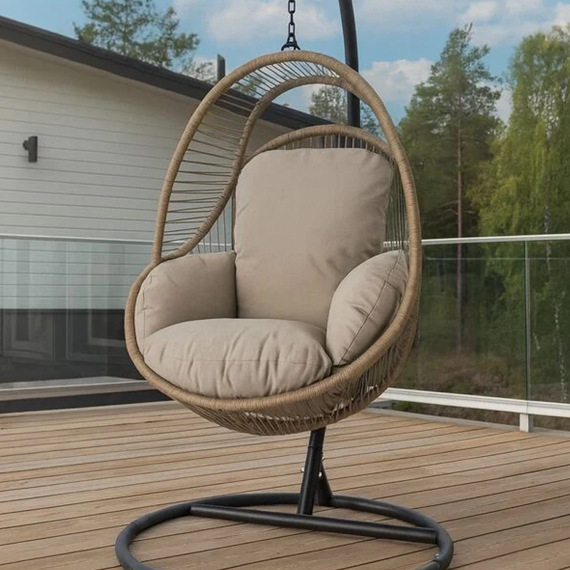 Riipputuoli tai toiselta nimeltään riippukeinu tuo rentoa tunnelmaa kodin terassille. Se sopii mainiosti myös parvekkeelle.