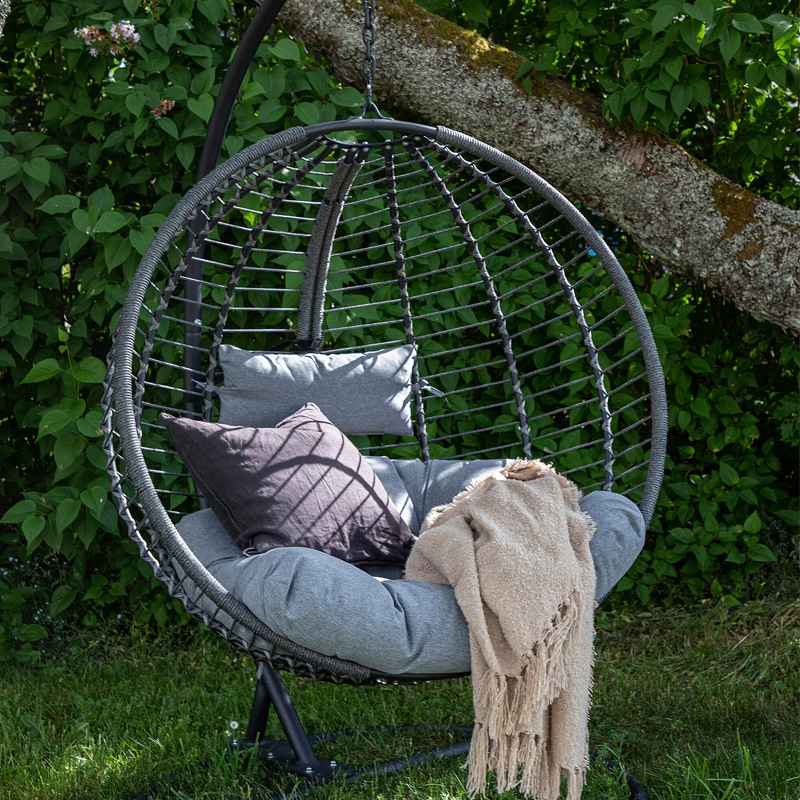 Riipputuoli tai toiselta nimeltään riippukeinu tuo rentoa tunnelmaa kodin terassille. Se sopii mainiosti myös parvekkeelle.