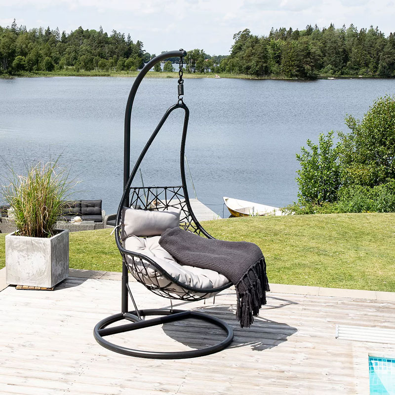 Riipputuoli tai toiselta nimeltään riippukeinu tuo rentoa tunnelmaa kodin terassille. Se sopii mainiosti myös parvekkeelle.